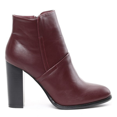 Bordowe botki na słupku Oliviera- Obuwie