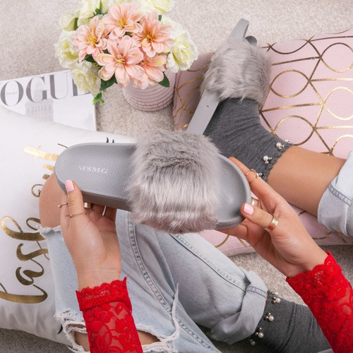 Jasnoszare klapki z futerkiem Millie- Obuwie